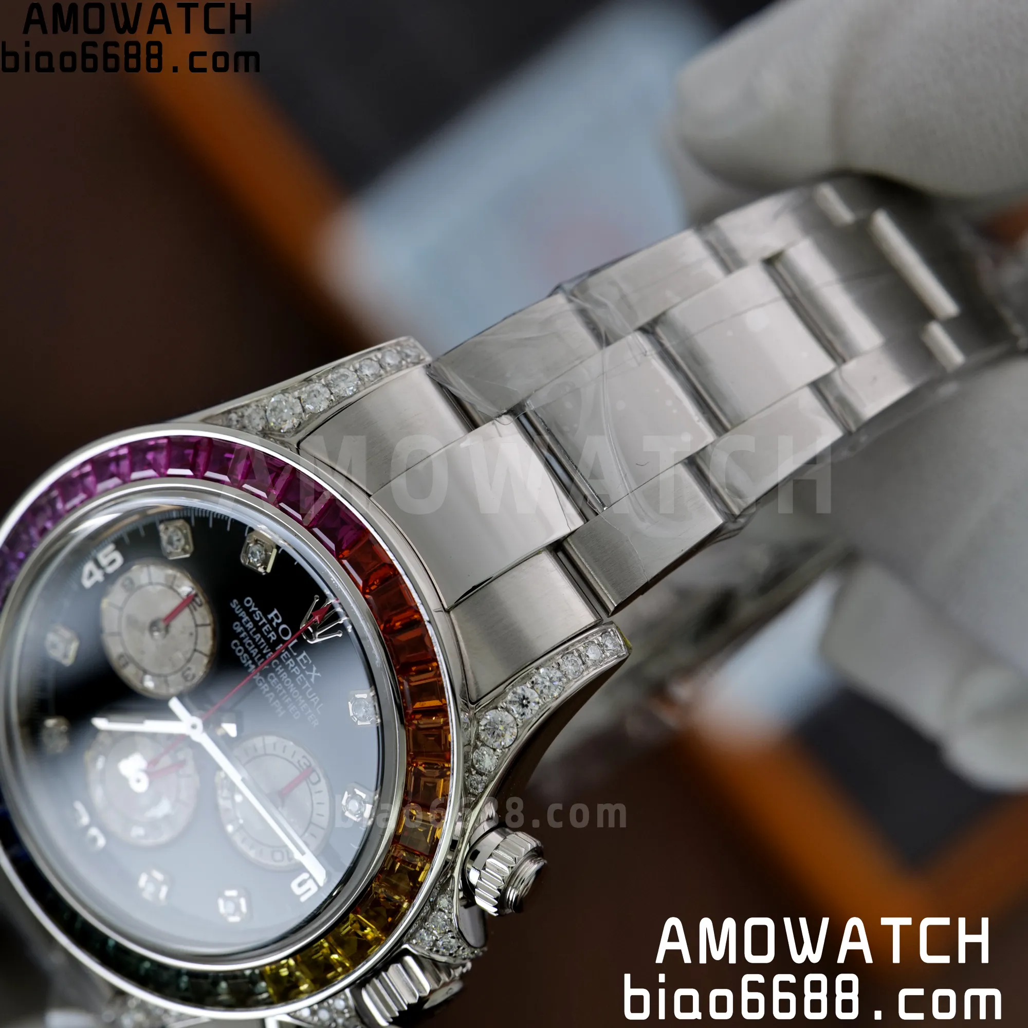 | Crystal | Scratch-proof sapphire crystal with semi-invisible crown etched at 6:00 position of the crystal (same as genuine and this is the first of its kind, one revolutionary breakthrough of the Rolex replicas) |