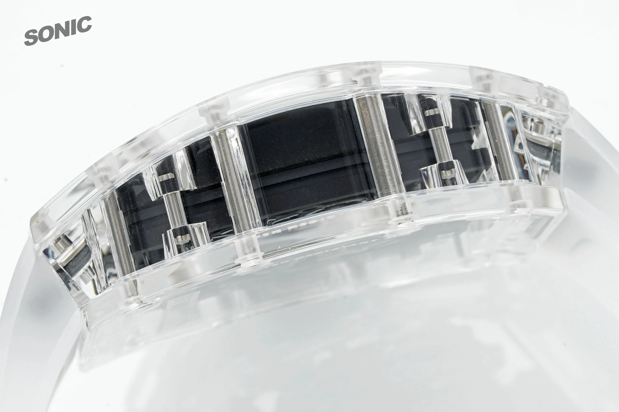 Richard Mille RM055 Crystal SONIC Best Edition Black Inner Bezel Gray Crown on Transparent Rubber Strap