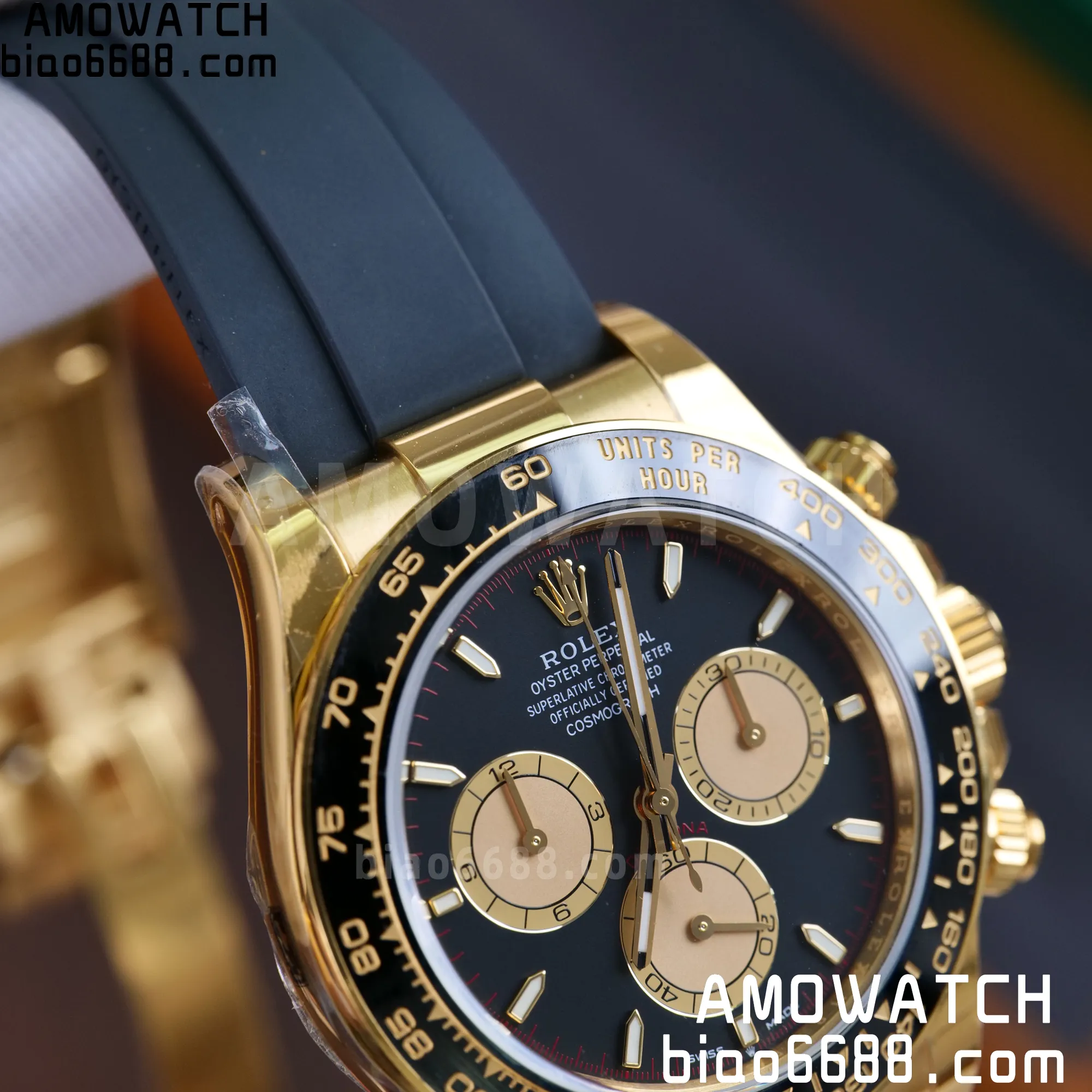 | Case | 18k yellow gold plated 1:1 replicated solid 904L stainless steel case |